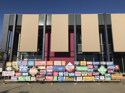 Όταν η Χίλαρι Κλίντον έχασε από τον Ντόναλντ Τραμπ στις 8 Νοεμβρίου του 2016, η Αμερικανή καλλιτέχνιδα Νίνα Χατσαντουριάν - Nina Khatchadourian πρόσθεσε το τελευταίο κομμάτι στην εξελισσόμενη εγκατάστασή της «Monument of the Unelected», ένα «νεκροταφείο» σημάτων προεκλογικής εκστρατείας των χαμένων σε αμερικανικές προεδρικές εκλογές.