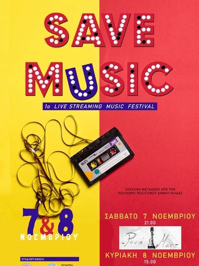Το 1ο Save Music θα πραγματοποιηθεί το διήμερο 7 & 8 Νοεμβρίου στον υπέροχο νέο Πολυχώρο πολιτισμού του δήμου Ήλιδας.