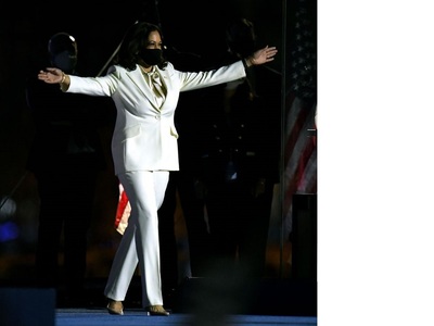 Δεν ήταν τυχαία, αλλά συμβολική η επιλογή του συγκεκριμένου κοστουμιού από την πρώτη γυναίκα αντιπρόεδρο των ΗΠΑ, Καμάλα Χάρις τη βραδιά της μεγάλης της νίκης, για τον πρώτο της λόγο εν μέσω καταιγιστικών χειροκροτημάτων. H 56χρονη καλιφορνέζα νομικός και πολιτικός με τις ινδικές ρίζες από την πλευρά της μητέρας της, αλλά και με τζαιμαικανές καταβολές λόγω του πατέρα της, αναδεικνύεται ήδη ως η μεγάλη star των αμερικάνικων εκλογών εκπροσωπώντας την αναμόρφωση του συστήματος της δικαιοσύνης. Δυναμική γερουσιαστής και εισαγγελέας, έχει αγωνιστεί για θέματα, όπως ο γάμος των ομοφυλοφίλων και η θανατική ποινή, η φορολογία, η ιατροφαρμακευτική περίθαλψη.