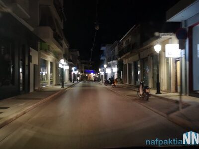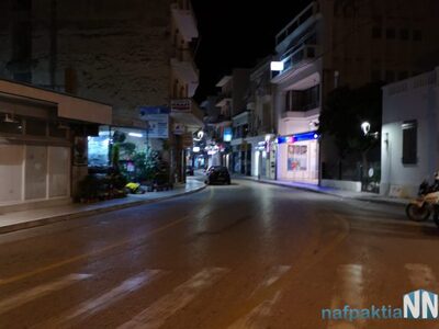 Σε εφαρμογή το μέτρο της απαγόρευσης κυκλοφορίας από τις 9 το βράδυ έως και τις 05:00 το πρωί. Άδειασε εντελώς η Ναύπακτος.