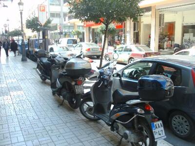 Το κακό έχει παραγίνει με τα δίκυκλα στο κέντρο της Πάτρας. Δεν υπάρχει πεζοδρόμιο, πεζόδρομος και πλατεία που να μην δεις σταθμευμένα μηχανάκια, τα οποία εμποδίζουν την ελεύθερη διέλευση των πεζών.