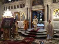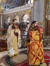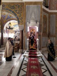 Τόσο στόν Ἑσπερινό ὃσο καί ἀνήμερα, προέστη τῶν Ἱερῶν Ἀκολουθιῶν ὁ Σεβασμιώτατος Μητροπολίτης Πατρῶν κ.κ. Χρυσόστομος. Οἱ Ἱερές Ἀκολουθίες ἐτέλεσθησαν κεκλεισμένων τῶν θυρῶν, ἀλλά μετεδόθησαν τηλεοπτικά καί ραδιοφωνικά ἀπό τά Μ.Μ.Ε. τῆς Ἱερᾶς Μητροπόλεως καί τά ἂλλα τοπικά.