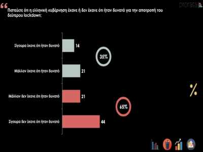 Σε σχέση με την πανδημική κρίση, το 55% των συμμετεχόντων αξιολογεί αρνητικά τη διαχείριση της πανδημίας από την κυβέρνηση, ποσοστό το οποίο αυξήθηκε κατά 3% σε σχέση με την μέτρηση του Σεπτεμβρίου.