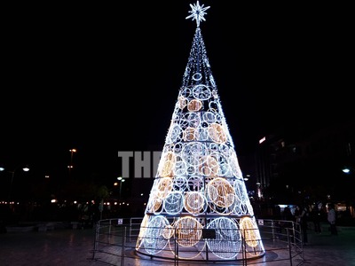 Κερδίζει τις εντυπώσεις το φετινό χριστουγεννιάτικο δέντρο που τοποθέτησε ο Δήμος στην πλατεία Τριών Συμμάχων στο κάτω μέρος του πεζόδρομου της Αγίου Νικολάου.
