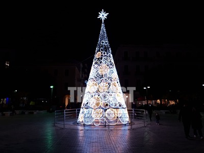 Το δέντρο είναι φωτεινό και σε καμία περίπτωση δεν περνάει απαρατήρητο από τους λίγους Πατρινούς που κυκλοφορούν έξω τα βράδια.