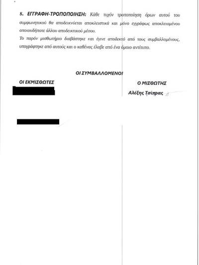 Αν δεν το πράξουν ως οφείλουν, θα ασκήσω τα δικαιώματα που ο νόμος ορίζει. Και θα διεκδικήσω το πόσο που δήθεν κόστισε η ανακατασκευή για να το διαθέσω στον ΕΔΟΕΑΠ, τον ασφαλιστικό φορέα των εργαζομένων στο χώρο της ενημέρωσης που αυτές τις μέρες δίνουν έναν δίκαιο αγώνα ενάντια στις απολύσεις που θα φέρει ο νόμος του κου Πέτσα". Μάλιστα ο πρόεδρος του ΣΥΡΙΖΑ έδωσε στη δημοσιότητα το συμφωνητικό εμοικίασης, το οποίο δημοσιεύουμε παρακάτω.
