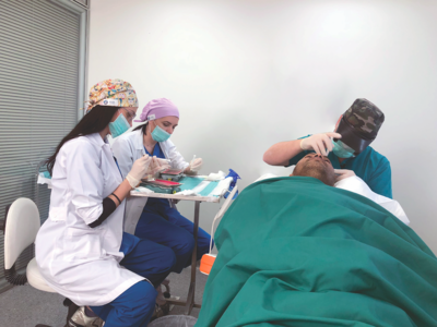 Ο Δρ. Βεκρής με την επιστημονική του ομάδα εν ώρα μεταμόσχευσης μαλλιών