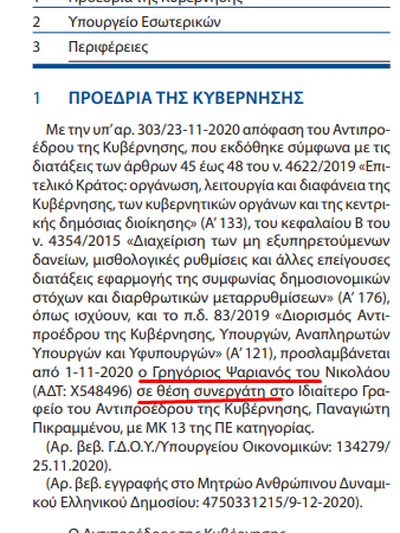 Εν μέσω lockdown, στις 23 Νοεμβρίου o Γρηγόρης Ψαριανός που ήταν υποψήφιος βουλευτής της ΝΔ, σύμφωνα με απόφαση του αντιπροέδρου της κυβέρνησης Παναγιώτη Πικραμμένου διορίζεται συνεργάτης του.