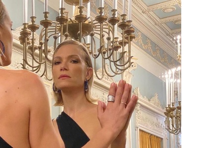 -Eighties glamour με party dress του διάσημου Vrettos Vrettakos, στολισμένο με 150000 κρύσταλλα swarovsky. Αξεσουάρ: πέδιλα Migato, κοσμήματα Danelian
