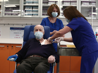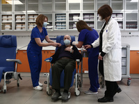 Η Ευσταθία Καμπισιούλη, νοσηλεύτρια στο «Ευαγγελισμό», είναι ο πρώτος άνθρωπος στην Ελλάδα που δέχτηκε το εμβόλιο εναντίον της Covid-19 πριν λίγα λεπτά, στη μία το μεσημέρι. Μισή ώρα έλαβε την πρώτη δόση του εμβολίου ο Μιχάλης Γιοβανίδης, φιλοξενούμενος σε Μονάδα Φροντίδας Ηλικιωμένων.