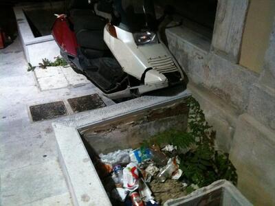 Στον χώρο υπάρχει εδώ και μήνες ένα μηχανάκι παρατημένο και όλα αυτά κανείς δεν σκέφτηκε να τα απομακρύνει και να αποκαταστήσει τον χώρο.