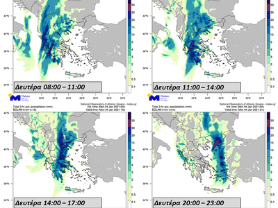 Σύμφωνα με τα διαθέσιμα προγνωστικά στοιχεία του Εθνικού Αστεροσκοπείου Αθηνών / Meteo.gr, το ψυχρό μέτωπο θα σαρώσει τη χώρα μας από τα δυτικά προς τα ανατολικά κατά τη διάρκεια της μέρας, προκαλώντας κατά τόπους ισχυρές καταιγίδες και πρόσκαιρα θυελλώδεις ανέμους στα πελάγη. Πυκνές χιονοπτώσεις θα σημειωθούν στα δυτικά και βόρεια ορεινά τμήματα.