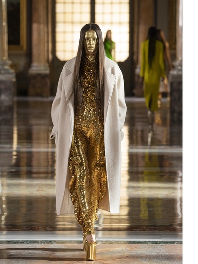Στον oίκο Valentino, o Pier Paolo Piccioli «κλειδωμένος» στο ατελιέ του στη Ρώμη, δεν θέλησε να σχεδιάσει τίποτα πομπώδες και ανεπίκαιρο. Απλοποίησε τις φιγούρες του και τις μάκρυνε εστιάζοντας σε κάπες, πλεκτά και γενικότερα nineties ρευστότητα. (To show παρουσιάστηκε στη Sala Grande του παλατιού Colonna της αιώνιας πόλης αλλά τυπικά περιλαμβάνεται στο πρόγραμμα του Παρισιού).