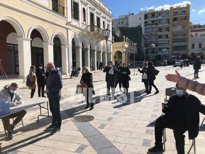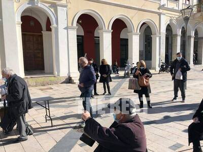Για άλλη μια μέρα πραγματοποιήθηκαν το πρωί της Τετάρτης rapid covid-19 tests στην πλατεία Γεωργίου στην Πάτρα. Συνεργείο του ΕΟΔΥ βρίσκεται μπροστά από το δημοτικό θέατρο Απόλλων και διενεργεί τεστ σε πολίτες που θέλουν να ελέγξουν την υγειονομική τους εικόνα δεδομένης της πανδημίας. Παρόντες στο σημείο, ο δήμαρχος Πατρέων Κώστας Πελετίδης και η αντιδήμαρχος υγείας Βίβιαν Σαμούρη.