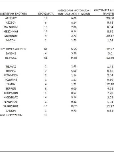 24 κρούσματα στην Π.Ε. Δυτικής Αττικής