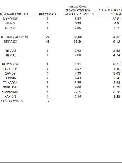 Τέλος, έχουμε 33 νέους θανάτους από τη νόσο COVID-19, φθάνοντας τους 5829 θανάτους συνολικά στη χώρα, εκ των οποίων 3427 (58.8%) άνδρες. Η διάμεση ηλικία των θανόντων συμπολιτών μας ήταν τα 79 έτη και το 95.5% είχε κάποιο υποκείμενο νόσημα ή/και ηλικία 70 ετών και άνω.