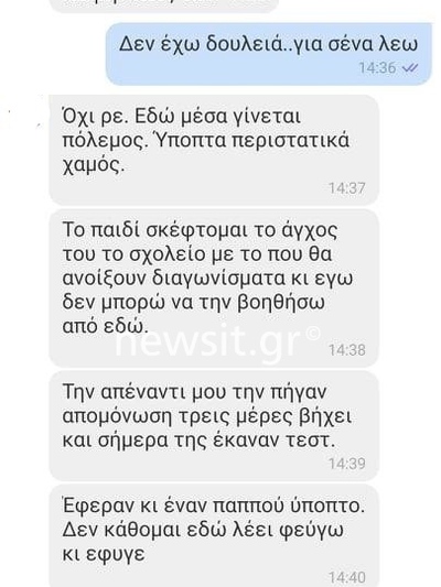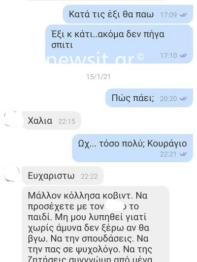 Συγκλονιστική είναι κι η τελευταία συνομιλία που είχαν μέσω viber η 44χρονη, με τον πρώην σύζυγό της. Αφού τον ενημερώνει ότι πρέπει να έχει νοσήσει από το φονικό ιό, στη συνέχεια του ζητά να προσέχει την 13χρονη κόρη της.