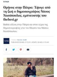 Σαν κεραυνός έπεσε η είδηση του θανάτου του Νάσου Νασόπουλου. Τα ΜΜΕ έχουν πρωτοσέλιδη τη μαύρη είδηση για τον χαμό του ιδρυτή του thebest.gr. H αναγνώριση στο έργο του και στις αρχές του είναι καθολική.