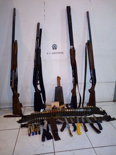 Ο παθόντας αστυνομικός μετέβη στο κέντρο υγείας Κλειτορίας για την παροχή πρώτων βοηθειών, ενώ σε έρευνα που ακολούθησε στο εσωτερικό του οχήματος του άνδρα και σε χώρο αποσκευών, οι αστυνομικοί βρήκαν και κατάσχεσαν: τέσσερις κυνηγετικές καραμπίνες, 104 φυσίγγια, επτά μαχαίρια, έναν μπαλτά και περισσότερα από 100 κιλά νωπού κρέατος