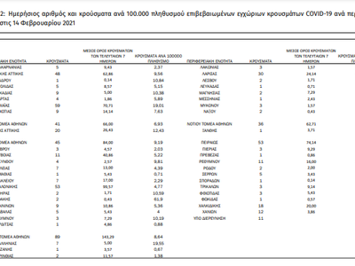 Η σημερινή καταμέτρηση του ΕΟΔΥ