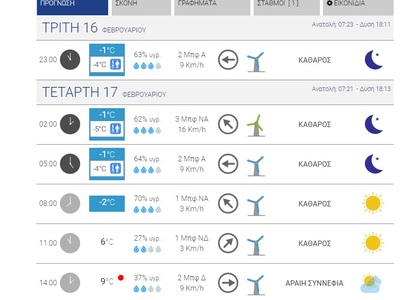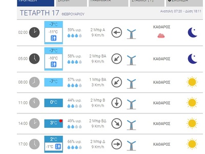 Τις πρώτες πρωινές ώρες της Τετάρτης η θερμοκρασία θα πέσει ακόμα μια -2 ενώ μέχρι το μεσημέρι αναμένεται να φτάσει μέχρι και 9 βαθμούς Κελσίου.