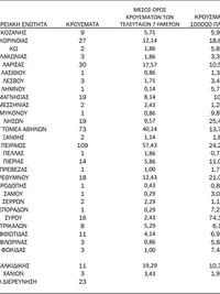 Εντυπωσιακό είναι το γεγονός ότι στο Κέντρο της Αθήνας καταγράφηκαν 230 κρούσματα, ενώ στον Δυτικό Τομέα Αθηνών 140, μόλις δύο λιγότερα απ’ όσα εντοπίστηκαν στη Θεσσαλονίκη (142). Στην Αχαΐα καταγράφηκαν 104 κρούσματα, ενώ στον Πειραιά 109.