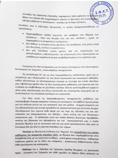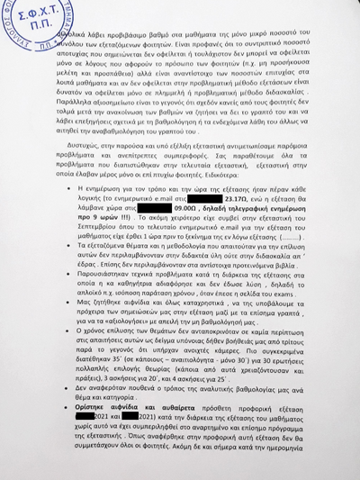 Η ανακοίνωση του Συλλόγου για το πρόβλημα που έχει ανακύψει με την εξέταση μαθήματος