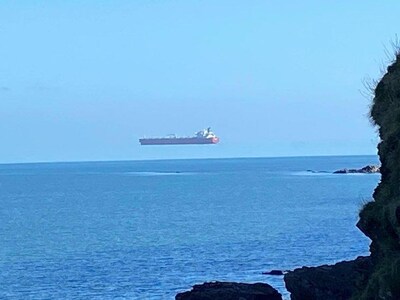 Οι εικόνες που απεικονίζουν ένα πλοίο να "αιωρείται" πάνω από τη θάλασσα, φέρεται να καταγράφουν μία σπάνια οπτική ψευδαίσθηση που δημιουργήθηκε στα ανοιχτά της ακτής της Αγγλίας. Ο Ντέιβιντ Μόρις έβγαλε φωτογραφία ενός πλοίου ενώ ο ίδιος περπατούσε στην ακρογιαλιά του Φάλμαουθ στην Κορνουάλη.