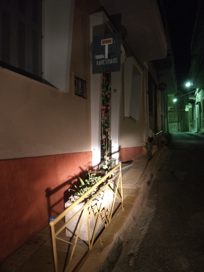 Η πιο όμορφη, πιο φιλική προς το περιβάλλον κολόνα που είδαμε ποτέ στην Πάτρα. Κάπου στα στενοσόκακα της Άνω Πόλης, στη ρίζα του κάστρο είναι. Μπορεί να προειδοποιεί για «Αδιέξοδο» μα δεν πειράζει, ας μην πάει πουθενά ο οδηγός. Και κει καλά είναι. Μοσχοβολάει ο τόπος από το αναρριχώμενο λουλούδι που την αγκάλιασε!