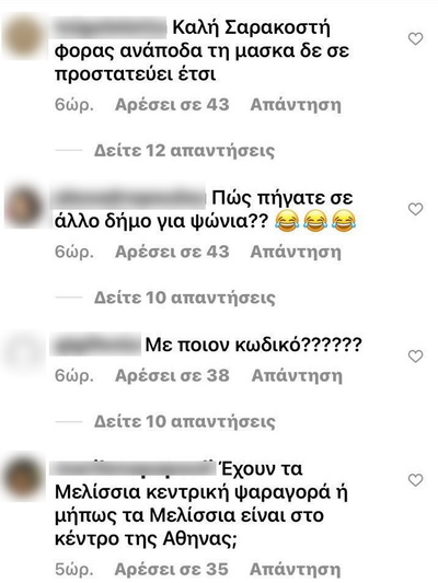Αρκετοί ήταν οι διαδικτυακοί της φίλοι που έσπευσαν να σχολιάσουν το γεγονός ότι φοράει λάθος τη μάσκα προστασίας από τον κορονοϊό. Ωστόσο η πλειοψηφία αντέδρασε στη μετακίνησή της, που ήταν εκτός Δήμου.