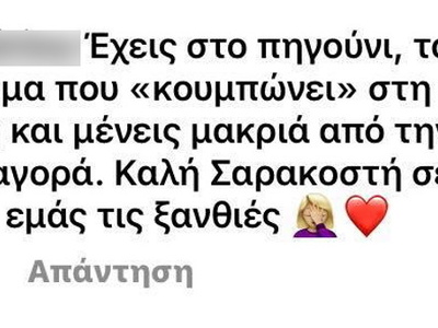 Η Ελένη Μενεγάκη ως ελεύθερος επαγγελματίας ίσως έχει βεβαίωση μετακίνησης σε όλη την Αττική. Όμως, ο κόσμος είναι πολύ πιεσμένος αυτή την περίοδο και τα πρόστιμα πολλά, με αποτέλεσμα να αντιδρά και να μην συγχωρεί ούτε τις… νομότυπες αποδράσεις.