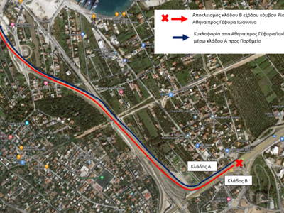 Στο πλαίσιο εκτέλεσης εργασιών συντήρησης στην περιοχή σύνδεσης του κόμβου Ρίου με τη Γέφυρα Ρίου-Αντιρρίου, από τις 08:00 το πρωί της Δευτέρας 22.03.2021 έως τις 15:00 το μεσημέρι της Τετάρτης 28.04.2021, θα πραγματοποιηθεί αποκλεισμός του κλάδου εξόδου του αυτοκινητόδρομου από Αθήνα προς Γέφυρα/Ιωάννινα (Β).