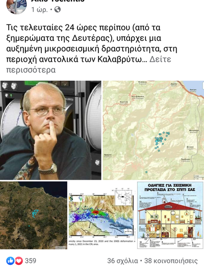 Αυξημένη μικροδραστηριότητα ανατολικά των Καλαβρύτων παρατηρεί ο Άκης Τσελέντης και όπως επισημαίνει σε 24 σχεδόν ώρες έχουν καταγραφεί 27 σεισμοί ενω θυμίζει "την αυξημένη σεισμική δράση που παρατηρούμε τους τελευταίους τρεις μήνες στο Δυτικό Κορινθιακό". Αναλυτικά σε post του στο facebook αναφέρει: