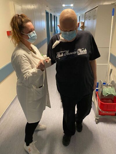 Ο δημοσιογράφος δημοσίευσε μια συγκινητική φωτογραφία την ώρα που περπατάει ξανά μετά από τόσο καιρό νοσηλείας, κρατώντας το χέρι της νοσηλεύτριας. Κάτω από την φωτογραφία του έγραψε: