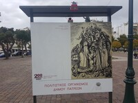 Αφορμή για το άρθρο αυτό είναι η σημερινή μου επίσκεψη στην πλατεία Ψηλών Αλωνίων. Μια κρύα συννεφιασμένη μέρα, μουντή και άχαρη, με φρέσκα τα απομεινάρια της βροχής. Μία μέρα μετά την ημερολογιακή επέτειο της Επανάστασης της Πάτρας το 1821 και δύο μέρες πριν την επίσημη ημέρα της Εθνικής μας Εορτής. Πλησίασα τα δύο μεταλλικά πλαίσια που είχε τοποθετήσει ο Πολιτιστικός Οργανισμός του Δήμου Πατρέων και βλέπω τέσσερα ξυλόγλυπτα του γνωστού χαράκτη Τάσσου με θέμα το 1821. Ομολογώ δεν χάρηκα καθόλου.