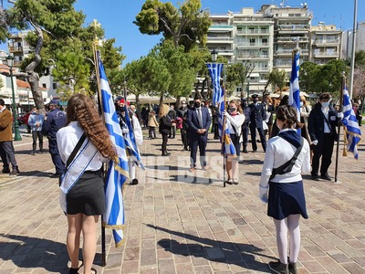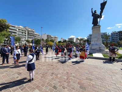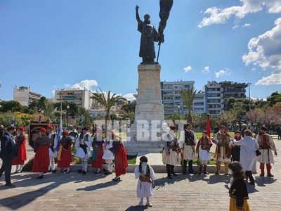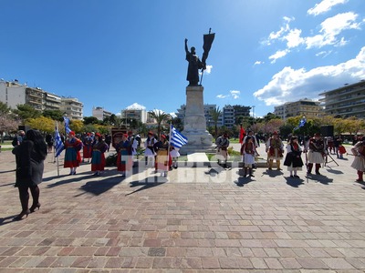 Μετά την ολοκλήρωση της Δοξολογίας στην Ευαγγελίστρια οι επίσημοι μετάβησαν στην πλατεία Υψηλών Αλωνίων όπου κατέθεσαν στεφάνια στο άγαλμα του ηγέτη της Επανάστης του 1821 Παλαιών Πατρών Γερμανού.