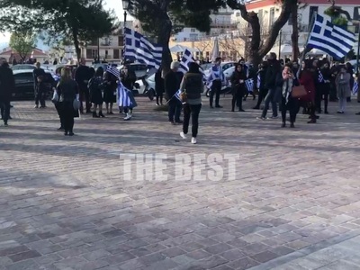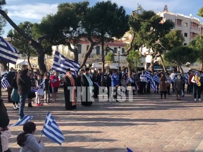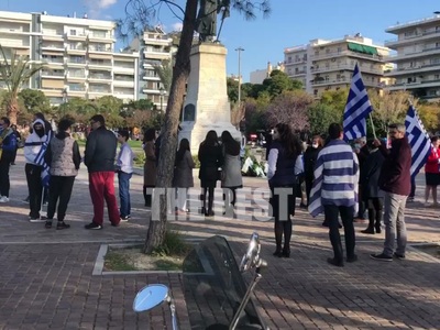 Κινητοποίηση στο κέντρο της Πάτρας με οχήματα και πολίτες με ελληνικές σημαίες πραγματοποιήθηκε νωρίς το απόγευμα από ομάδα πολιτών και ιερείς. Την κινητοποίηση παρακολουθεί διακριτικά η αστυνομία. Σύμφωνα με πληροφορίες είχε προηγηθεί συγκέντρωση και τρισάγιο από ιερείς στην πλατεία Υψηλών Αλωνίων μπροστά από το άγαλμα του Παλαιών Πατρών Γερμανού.