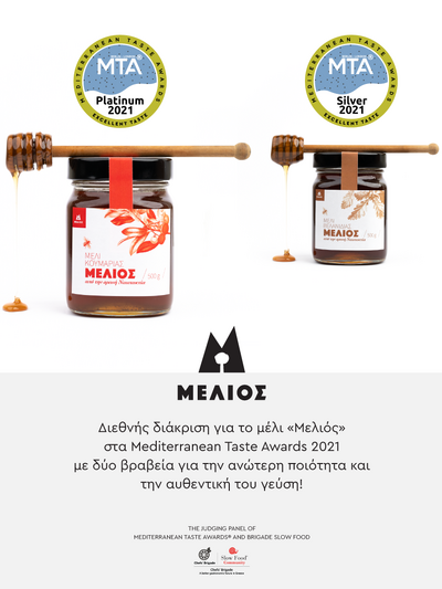 Το μέλι «Μελιός» απέσπασε μια κορυφαία διάκριση στον διεθνή διαγωνισμό των Μεσογειακών Βραβείων Γεύσης «Mediterranean Taste Awards 2021» (www.medtasteawards.com), ο οποίος πραγματοποιήθηκε το διάστημα 26-28 Φεβρουαρίου 2021 στο Βερολίνο και το Λονδίνο με στόχο την ανάδειξη των εξαιρετικών προϊόντων τροφίμων και ποτών στην περιοχή της Μεσογείου σύμφωνα με την αξιολόγηση κορυφαίων εμπειρογνωμόνων και επιστημόνων της γαστρονομίας.