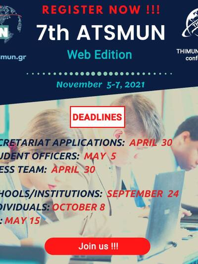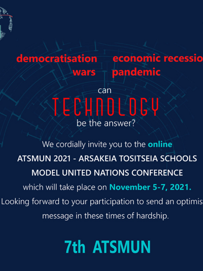 Το φετινό συνέδριο θα διεξαχθεί διαδικτυακά. Οι μαθητές όχι μόνο θα αποκομίσουν τα αναγνωρισμένα διεθνώς οφέλη αυτού του τύπου των συνεδρίων, αλλά και θα προετοιμαστούν για τη μετέπειτα φοιτητική και επαγγελματική ζωή τους συμμετέχοντας σε ψηφιακές δραστηριότητες. Το Συνέδριο θα διεξαχθεί στις 5-7 Νοεμβρίου 2021. Όλες οι χρήσιμες λεπτομέρειες αναρτώνται στον ιστότοπο του συνεδρίου http://www.atsmun.gr/