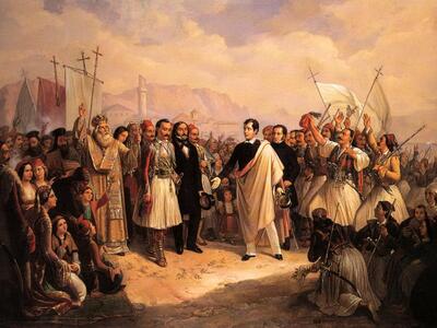 Lord Geogre Gordon Noel Byron VI (εξελ. Βύρων), έφτασε στο Μεσολόγγι στις 5 Ιανουαρίου 1824, ως εκπρόσωπος του Φιλελληνικού Κομιτάτου του Λονδίνου. Δεν τα κατάφερε, όμως, να μείνει ουδέτερος στις έριδες ανάμεσα στους ηγέτες της Επανάστασης.