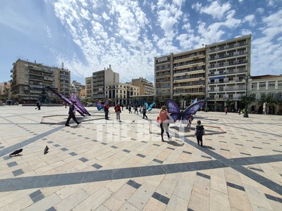 Μεγάλες και πολύχρωμδες πεταλούδες γέμισε η πλατεία Γεωργίου της Πάτρας. Η εικόνα τους είναι εντυπωσιακή και τραβά τα βλέμματα μικρών και μεγάλων που τις χαζεύουν και ποζάρουν σε αυτές. Πρόκειται για κατασκευές που τοποθέτησε ο Δήμος Πατρέων ενόψει της Πρωτομαγιάς ενώ κατασκευή έχει τοποθετηθεί και στην πλατεία Τριών Συμμάχων.