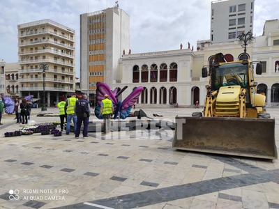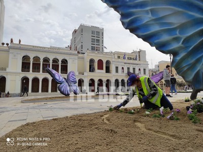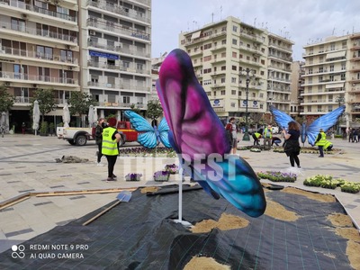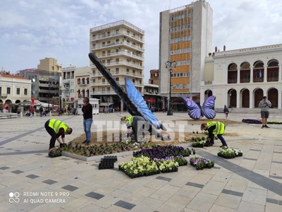 Μια τελείως διαφορετική εικόνα παρουσιάζει από χθες η πλατεία Γεωργίου της Πάτρας που έχει γεμίσει μεγάλες και πολύχρωμες πεταλούδες.