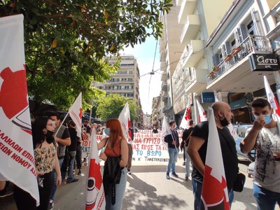 Εργαζόμενοι της ΑΔΕΔΥ και σωματεία του ΠΑΜΕ πραγματοποίησαν συγκέντρωση διαμαρτυρίας με αφορμή τον εορτασμό της εργατικής πρωτομαγιάς και με αιχμή φέτος το νομοσχέδιο που επιφέρει αλλαγές στα εργασιακά.