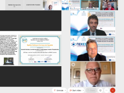 Με μεγάλη επιτυχία έληξε την Κυριακή 9 Μαΐου 2021 το διαδικτυακό Πανελλήνιο και Διεθνές Συνέδριο «Εκπαιδευτικοί & Εκπαίδευση STE(A)M - STE(A)M educators & education» που πραγματοποιήθηκε υπό την αιγίδα του Υπουργείου Παιδείας και Θρησκευμάτων και συνδιοργανώθηκε από το Περιφερειακό Κέντρο Εκπαιδευτικού Σχεδιασμού (ΠΕ.Κ.Ε.Σ.) Δυτικής Ελλάδας της ΠΔΕ Δυτικής Ελλάδας, το Ινστιτούτο Τεχνολογίας Υπολογιστών και Εκδόσεων "Διόφαντος" (Ι.Τ.Υ.Ε.) και το Ελληνικό Ανοικτό Πανεπιστήμιο (Ε.Α.Π.). Την Επιστημονική ευθύνη του Συνεδρίου είχαν οι Δρ. Αχιλλέας Καμέας, Καθηγητής Ε.Α.Π. και Δρ. Σπυρίδων Παπαδάκης, Οργανωτικός Συντονιστής ΠΕ.Κ.Ε.Σ. Δυτικής Ελλάδας.