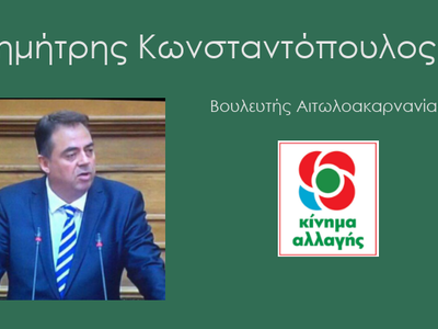 *Επίσης σε ανακοίνωση του, ο Βουλευτής Αιτωλοακαρνανίας του Κινήματος Αλλαγής – ΠΑΣΟΚ Δημήτρης Κωνσταντόπουλος, με αφορμή δημοσιεύματα περί έγκρισης του Στρατηγικού Σχεδίου για την Ακαδημαϊκή και Ερευνητική Ανάπτυξη του Πανεπιστημίου Πατρών από το Υπουργείο Παιδείας και Θρησκευμάτων, έκανε την ακόλουθη δήλωση ζητώντας από την αρμόδια Υπουργό Παιδείας να απορρίψει την πρόταση του Πανεπιστημίου Πατρών για το μέλλον της τριτοβάθμιας εκπαίδευσης στην Αιτωλοακαρνανία.