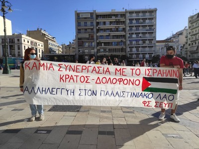 Συγκέντρωση αλληλεγγύης στον Παλαιστηνιακό λαό πραγματοποιήθηκε το απόγευμα της Πέμπτης, στην πλατεία Γεωργίου στην Πάτρα. Στην συγκέντρωση συμμετείχαν φοιτητικοί σύλλογοι, αλλά και τοπικοί φορείς, ενώ παραβρέθηκε και ο δήμαρχος Πατρέων, Κώστας Πελετίδης.