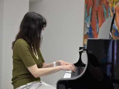 Την μουσική υποδοχή όσων προσήλθαν στην παρουσίαση, είχε στο πιάνο η καθηγήτρια του Ωδείου Νίνα Μεταξά.