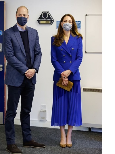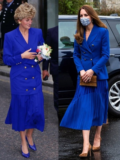 Mια ακόμα πολυσυζητημένη εμφάνιση της Κέιτ Μίντλετον με αφορμή την επίσκεψή της στη Σκοτία στο πλευρό του πρίγκιπα συζύγου της. H 39χρονη δούκισσα, της οποίας η στυλιστική επιρροή παραμένει πανίσχυρη, ακολουθεί τη μόδα με έξυπνη διακριτικότητα ώστε να μην καταπατάει το dress code του παλατιού, με βασικό σύμμαχο βέβαια την άψογη ψιλόλιγνη σιλουέτα της. Μια επίσκεψη σε φιλανθρωπική οργάνωση στο North Lanarkshire ξεσήκωσε και πάλι τα φλας. Φόρεσε ένα σύνολο στο έντονο μπλε της σημαίας της Σκοτίας δημιουργώντας ένα μοντέρνο ταγιέρ σε total royal blue. Η λογική του σετ και των μονοχρωματικών συνδυασμών τυγχάνουν μεγάλης δημοτικότητας τελευταία. Επιπλέον συνέχισε να επενδύει στις οικονομικές επιλογές που κάνει ο περισσότερος κόσμος αλλά και να ανακυκλώνει παλιά της ρούχα.