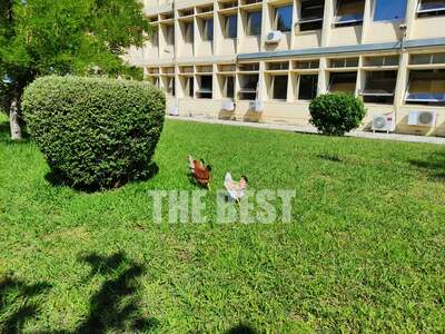 Κι αυτό γιατί διαπίστωσαν ότι το γκαζόν μπροστά από την είσοδο του νοσοκομείου είχε μετατραπεί σε… κοτέτσι.