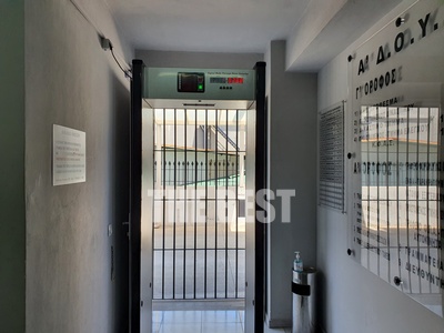 Επιπλέον μέτρα ασφαλείας προστέθηκαν στην είσοδο της Α ΔΟΥ Πατρών. Και τα μέτρα αυτά δεν αφορούν αποκλειστικά στην αποτροπή περαιτέρω διάδοσης της πανδημίας. Μια καγκελόπορτα είναι το πρώτο που συναντά ο φορολογούμενος που θα μεταβεί στην υπηρεσία για να διεκπεραιώσει κάποια εργασία. Στη συνέχεια θα πρέπει να περάσει από ανιχνευτή μετάλλων, να δώσει τα στοιχεία του κι αν όλα πάνε καλά, θα περάσει στο εσωτερικό της δημόσιας οικονομικής υπηρεσίας της Πάτρας.